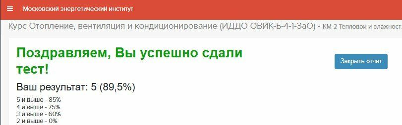КМ-2 Тепловой и влажностный балансы. Курс Отопление, вентиляция и кондиционирование (ИДДО ОВИК-Б-4-1-ЗаО) 🙋♂️🙋♂️🙋♂️ Коллекция ответов вуз ПРОМЕТЕЙ