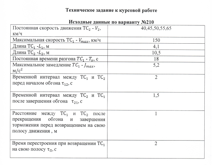 Курсовая работа: определение параметров завершенного и незавершенного обгона