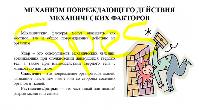 Презентация. Механизм повреждающего действия механических факторов. Синдром длительного раздавливания (краш-синдром) 2021