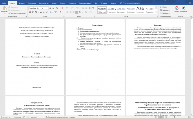 Реферат по Педагогика на тему "Физическая культура и спорт как средство педагогической коррекции отклоняющегося и девиантного поведения молодежи". Объем работы - 9 страниц.