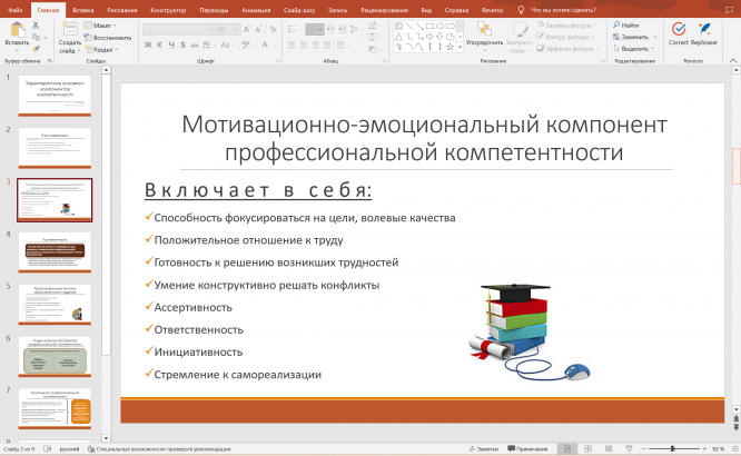 Презентация по Педагогика на тему "Характеристика основных компонентов компетентности". Объем работы - 9 слайдов.