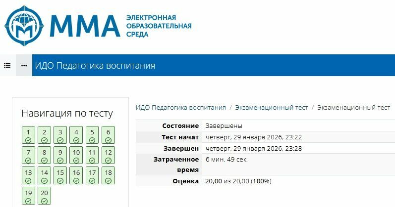 Сборник ответов к экзаменационному тесту Педагогика воспитания ММА.
