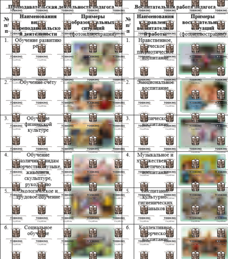 Традиционно основными видами педагогической деятельности, осуществляемыми в целостном педагогическом процессе, являются преподавание и воспитательная работа. Рассмотрите предложенные иллюстративные материалы и соотнесите их с соответствующим видом педагогической деятельности. Используйте левую кнопку компьютерной мыши и переместите изображения в избранные ячейки таблиц .
