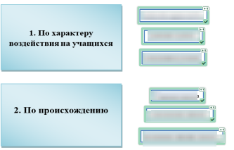 Средства обучения представляют собой материальные и духовные ценности, необходимые для достижения учебно-воспитательных целей. По своему составу они достаточно разнообразны, но чётко классифицированы.Две классификации средств обучения представлены далее в блок-схеме. Установите наличие взаимосвязей между содержанием левосторонних (цветных) блоков и правосторонних элементов схемы. Важно отметить, что в левосторонних блоках представлены обоснования для классификации средств обучения, а в левосторонних элементах — составляющие их компоненты. Используйте левую кнопку компьютерной мыши для восстановления блок-схемы.