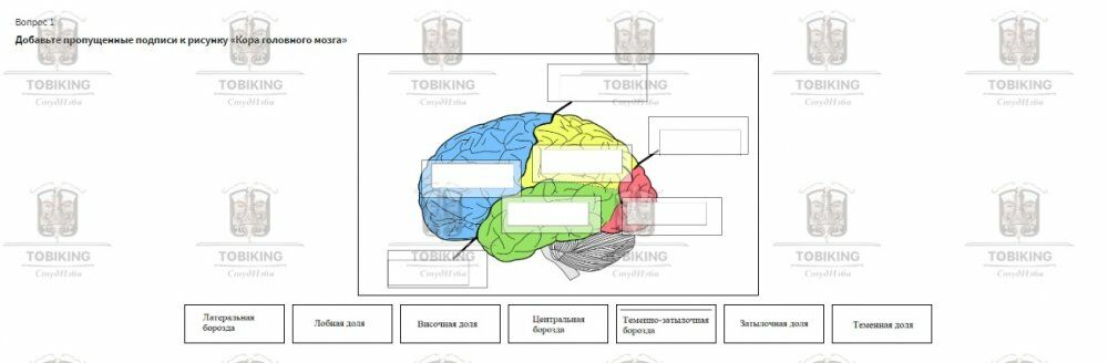 Добавьте пропущенные подписи к рисунку «Кора головного мозга»