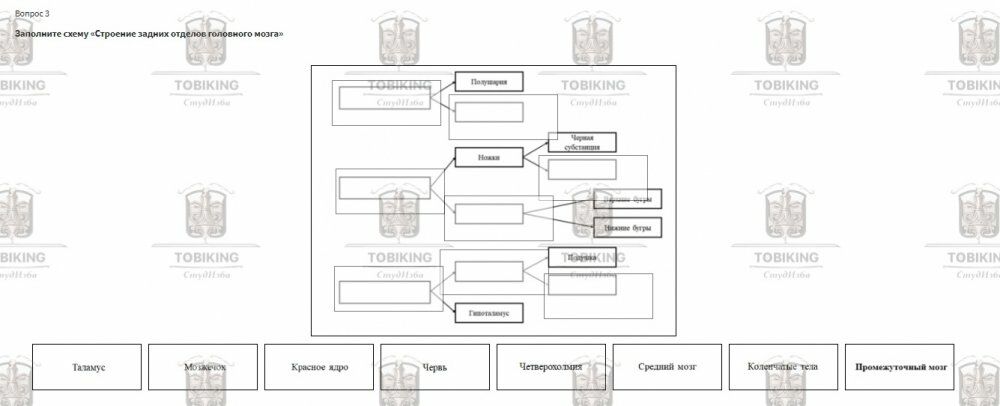 Заполните схему «Строение задних отделов головного мозга»