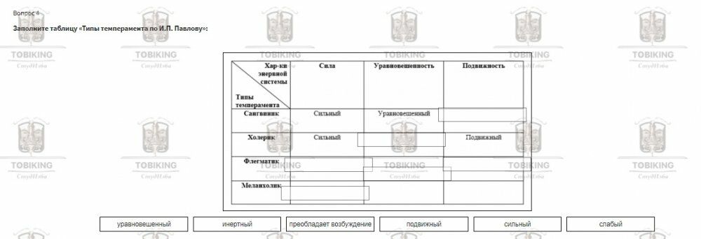 Заполните таблицу «Типы темперамента по И.П. Павлову»: