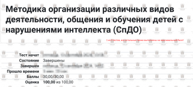 ☀️Ответы на тесты 1-3 Методика организации различных видов деятельности, общения и обучения детей с нарушениями интеллекта | НСПК 100% правильно☀️