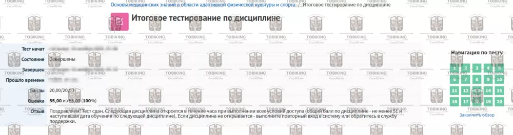 Услуга: Итоговое тестирование к курсу "Основы медицинских знаний в области адаптивной физической культуры и спорта"