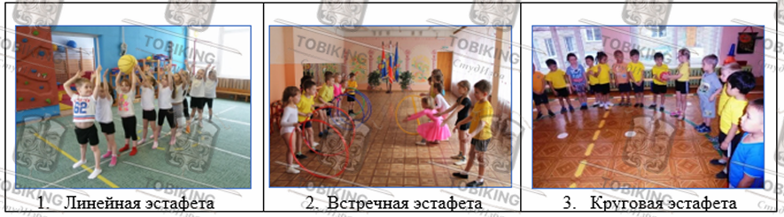 Физическое воспитание занимающихся 9-11 лет в значительной степени должно быть направлено на развитие скоростных, скоростно-силовых качеств. Важным средством своевременного воспитания скоростных качеств младших школьников является бег Внимательно рассмотрите фотоизображения и выберите только один вариант названия бега - командного вида легкой атлетики, успех в котором зависит от умения передавать и принимать специальный предмет на высокой скорости в ограниченной зоне передачи Выпишите правильный ответ цифрой, соответствующей виду бега Задание 2.2. Игры-эстафеты — это одна из разновидностей подвижных игр командного характера с правилами. В практике дополнительного образования детей дошкольного возраста игры-эстафеты проводятся на физкультурных развлечениях, на спортивных праздниках, в походах.