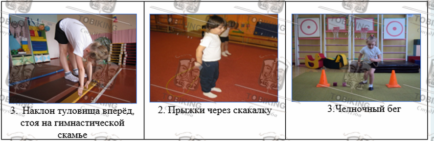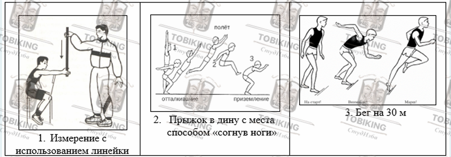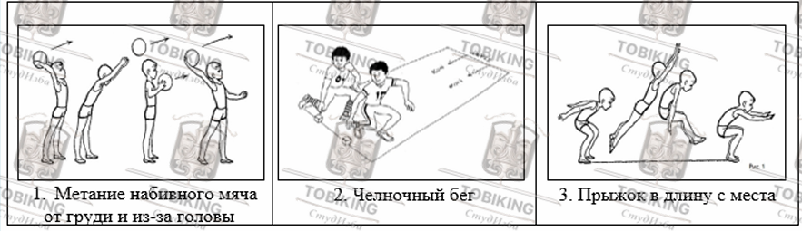 Внимательно рассмотрите изображения и выберите только один вариант названия двигательного теста, который входит в систему оценки скоростно-силовых качеств занимающихся 7-12 лет.