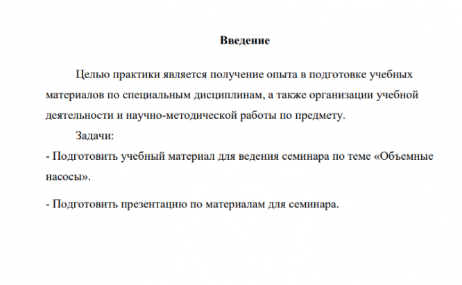 Целью практики является получение опыта в подготовке учебных материалов по специальным дисциплинам, а также организации учебной деятельности и научно-методической работы по предмету. Задачи: - Подготовить учебный материал для ведения семинара по теме «Объемные насосы». - Подготовить презентацию по материалам для семинара.