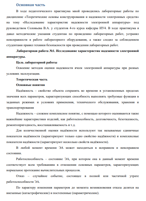 Отчёт по практике: Отчет по педагогической практике - Исследование характеристик надежности электронной аппаратуры