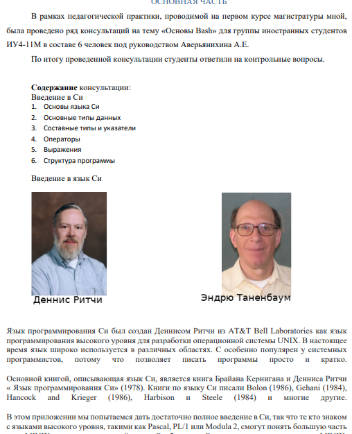 В рамках педагогической практики, проводимой на первом курсе магистратуры мной, была проведено ряд консультаций на тему «Основы Bash» для группы иностранных студентов ИУ4-11М в составе 6 человек под руководством Аверьянихина А.Е. По итогу проведенной консультации студенты ответили на контрольные вопросы