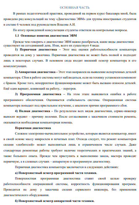 Отчёт по практике: Отчет по педагогической практике - Диагностика ЭВМ