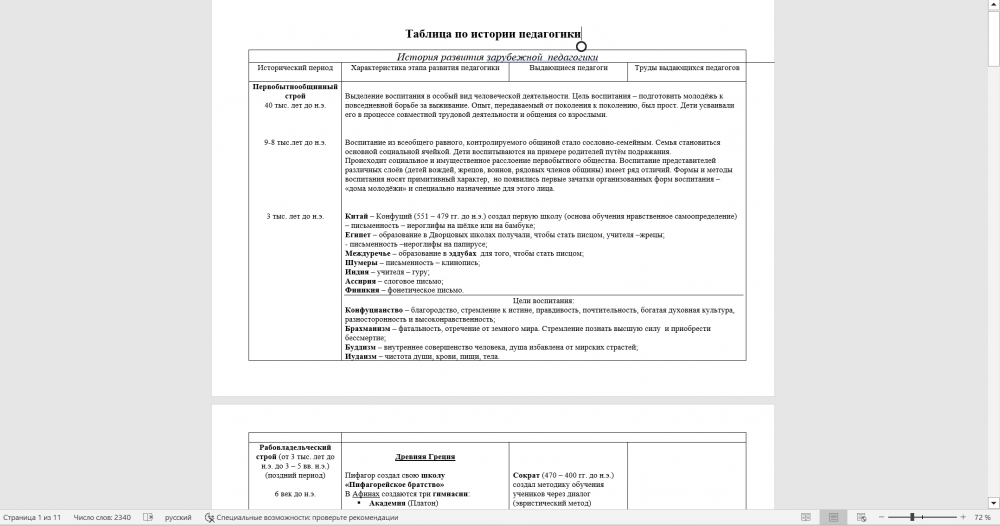 Вопросы/задания к заданиям: Таблица по истории педагогики