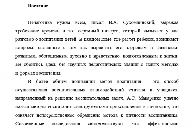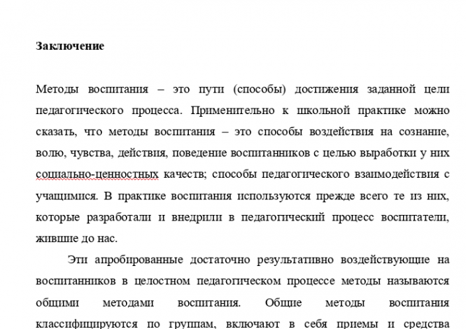 Реферат, включающий в себя следующие разделы:введение, виды методов воспитания, условия оптимального выбора и эффективного применения методов воспитания, заключение. Также включает в себя титульный лист и оглавление с нумерацией страниц. Реферат оформлен по требованиям : выравнивание по ширине, шрифт 14 Times New Roman, абзацный отступ 1,25, интервал 1,5.