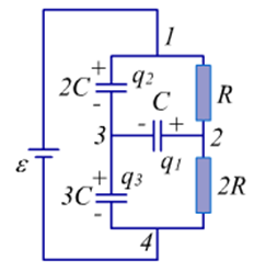 Задача. Определить заряд конденсатора С в схеме, изображённой на рисунке. Внутренним сопротивлением батареи пренебречь.