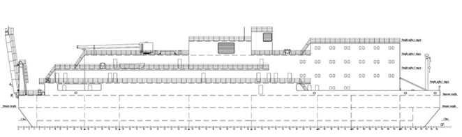 Плавучий энергетический блок представляет собой гладкопалубное несамоходное судно стоечного типа, с прямоугольными обводами корпуса, с многоярусной надстройкой.