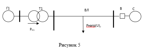 Для электропередачи, преобразованной в соответствии со схемой задания 1 (оставлены без изменения элементы передающей станции; место подключения нагрузки, приемная система представлена нагрузкой и системой неограниченной мощности; нагрузка задана статическими характеристиками проверить статическую устойчивость нагрузки по критериям и , полагая, что выключатель В отключен (см.пример 2 [1]). На генераторах АРВ отсутствует.