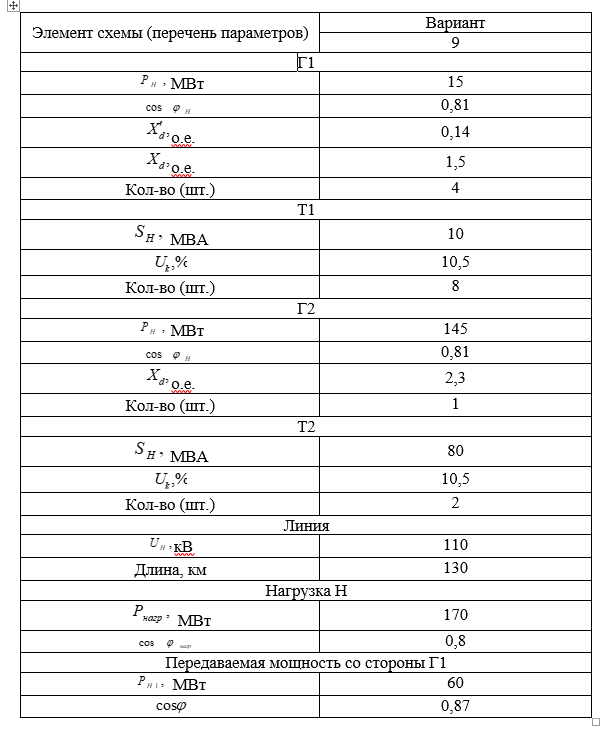 Для всех вариантов определить предел передаваемой мощности со стороны станции с генераторами Г1. Место подключения нагрузки в схеме электропередачи, характер ее представления определяются по варианту. Варианты задания 1 представлены в таблице 1 и 2