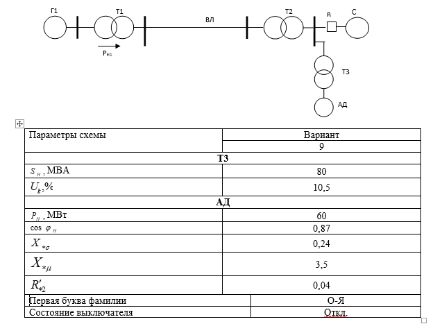 Для электропередачи, преобразованной в соответствии со схемой задания 2 (оставлены без изменения элементы передающей станции, место подключения нагрузки, система принята обладающей неограниченной мощностью, нагрузка представлена в виде эквивалентного асинхронного двигателя, присоединенного к шинам вторичного напряжения п/ст) определить в соответствии с вариантом задания: