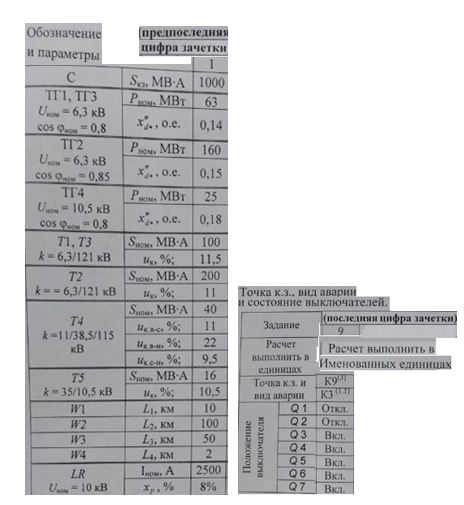 2) Рассчитать аналитическим способом сверхпереходный и ударный токи к.з. в заданных точках (в соответствии с заданием по таблице 2), используя приближенное приведение параметров;