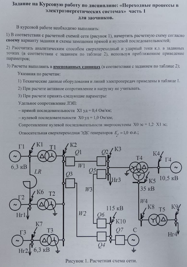 Задание на курсовую работу по дисциплине: «Переходные процессы в электроэнергетических системах», часть 1 для заочников. В курсовой работе необходимо выполнить: