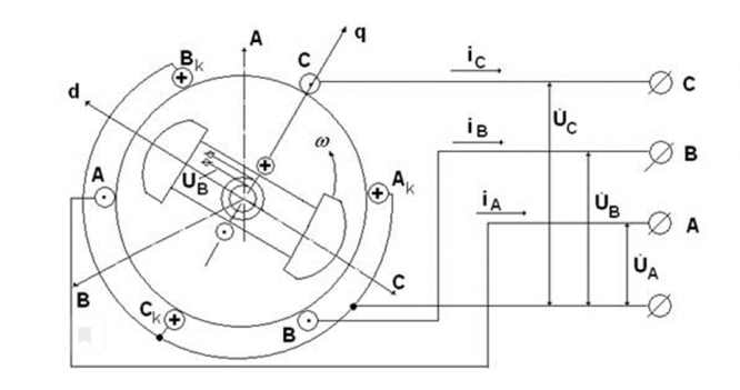 15) Переход от трехосной к двухосной системе координат соответствует тому, что трехфазная машина, по существу, заменена эквивалентной