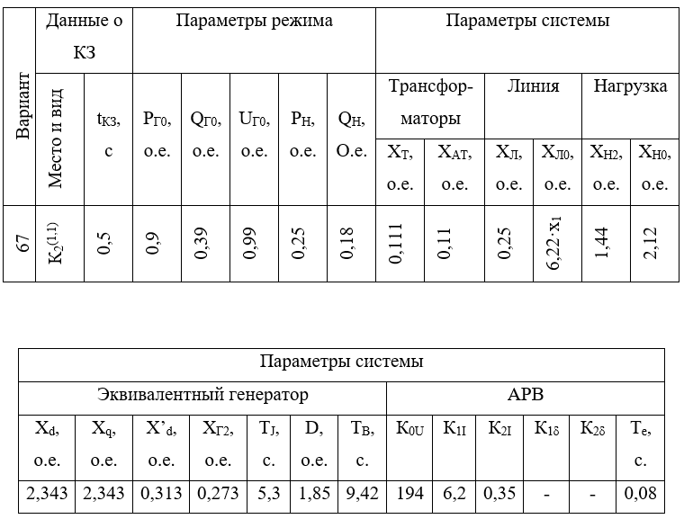 Курсовая работа 2: Исследование устойчивости электроэнергетической системы вариант 67