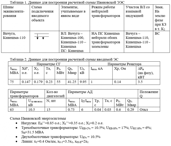 Расчет режимов короткого замыкания (КЗ) в электроэнергетической системе (ЭЭС) требуется производить как при эксплуатации, так и при развитии энергосистемы, в частности, при вводе новых объектов: электрических станций и подстанций. При этом для проверки электрооборудования, настройки устройств защиты и других целей рассматриваются различные виды КЗ в различных расчетных точках. В данной курсовой работе задания по расчету режимов КЗ также связываются с вводом того или иного объекта, задаваемого условно по вариантам в реальных, но достаточно упрощенных схемах действующих энергосистем: Ивановской, Ярославской, Воркутинской. Расчетная точка КЗ при этом задается на вновь вводимом объекте (например, для проверки его оборудования). Такая постановка учебной задачи приближает ее к практике, дает возможность познакомиться со схемами реальных систем и уровнями их токов КЗ. Решение поставленной задачи возможно различными путями. Один из них предполагает наличие или составление полной расчетной схемы ЭЭС, насчитывающей, возможно, сотни узлов, с дальнейшим применением ЭВМ и специализированных программ автоматизированного расчета КЗ. Очевидно, что для учебных целей этот путь неприемлем. Другой способ состоит в эквивалентировании, т.е. упрощении столь обширных схем до обозримых размеров. При этом если известен ток КЗ на шинах примыкания ЭЭС, то можно заменить всю сложную схему ЭЭС одним эквивалентным источником. Возможны случаи с несколькими шинами примыкания, по каждым из которых эквивалентируемая часть системы заменяется соответствующим источником. При этом не будут учтены возможные связи между шинами примыкания через отбрасываемую часть схемы. Однако погрешность получается вполне приемлемой, если упомянутые связи слабы (по сравнению со связями между шинами примыкания, учитываемыми в явном виде).