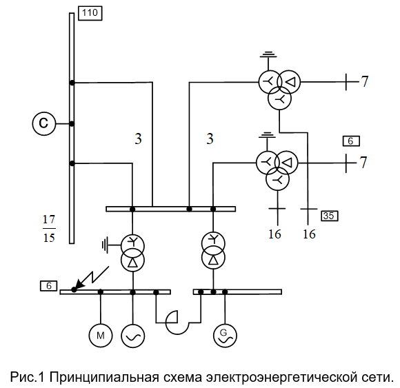 Курсовая работа 1: Расчет режимов короткого замыкания в электроэнергетической системе вариант 7