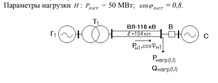 Практическое занятие № 2 Тема: «Расчет статической устойчивости узла нагрузки, в том числе заданной эквивалентным асинхронным двигателем» Задача 2-1. Основная часть расчетной схемы (рис.2-1), исходный режим и параметры элементов электропередачи повторяют данные задачи 1. Отличием является то, что вместо станции Γ2 введена приемная система, которая представлена как система неограниченной мощности. При этом нагрузка задана статическими характеристиками.