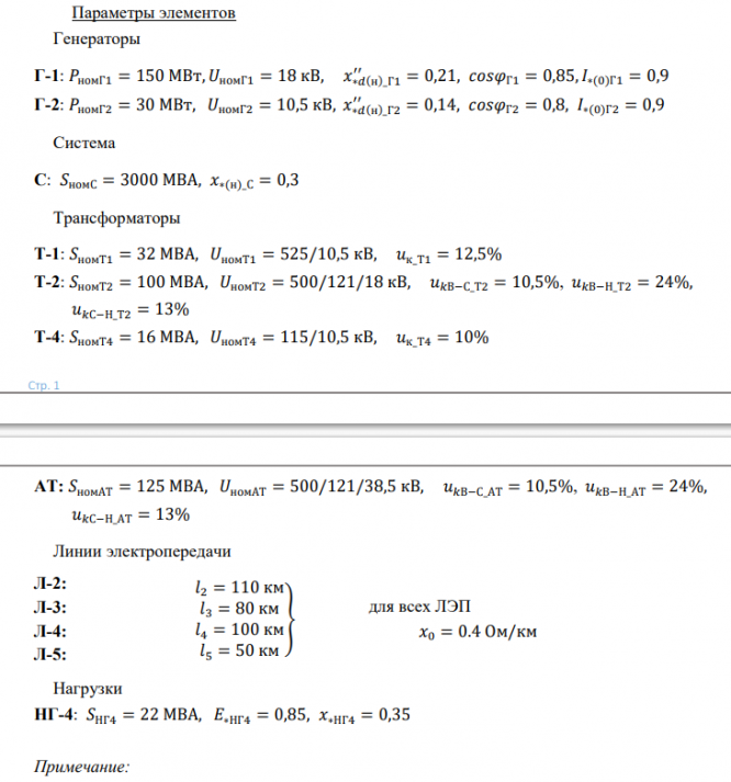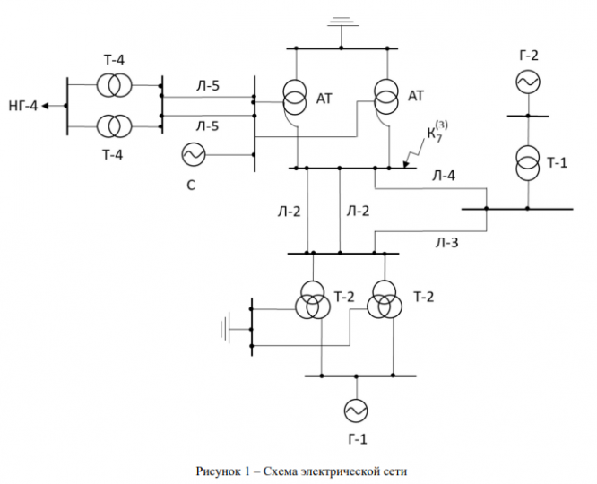 Для симметричной системы, схема которой показана на рисунке 1, определить начальный ток при трехфазном коротком замыкании в точке