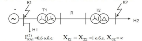 3) Определить ток междуфазного КЗ в схеме для точки К1, если известно