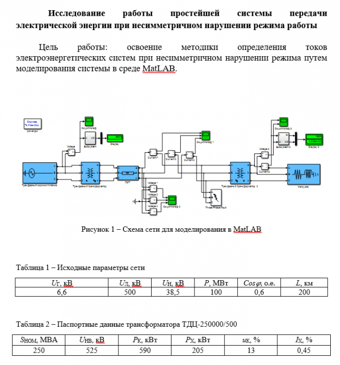 Цель работы: освоение методики определения токов электроэнергетических систем при несимметричном нарушении режима путем моделирования системы в среде MatLAB.
