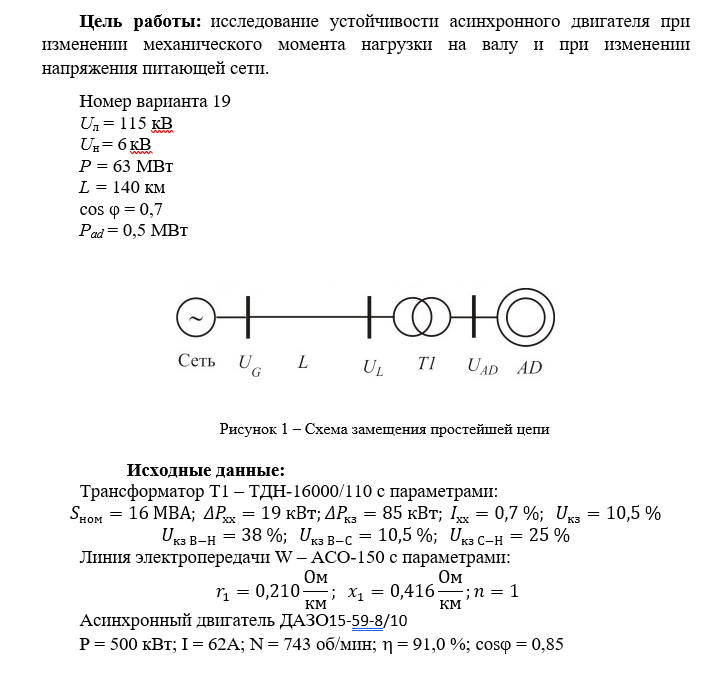 Лабораторная работа: Исследование статической устойчивости асинхронного двигателя вариант 19