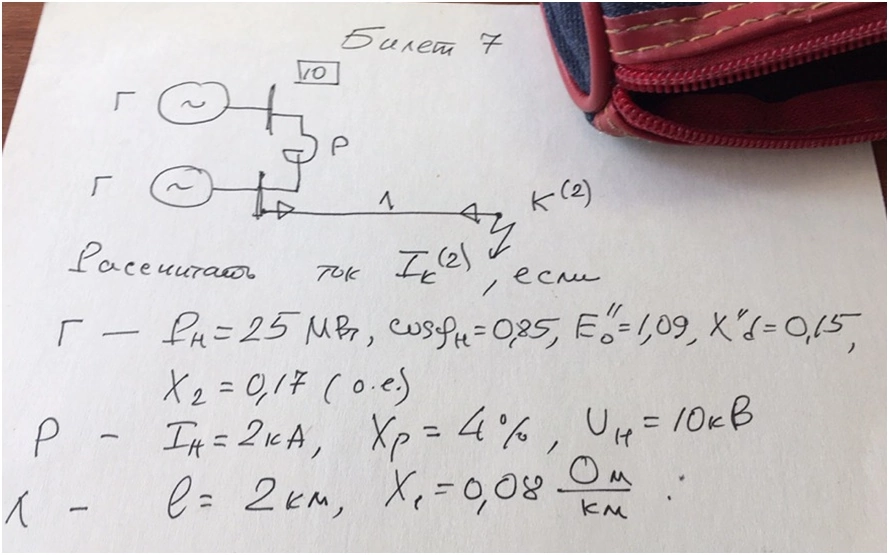 Главная » Учебные материалы » Переходные процессы » Решения задач » ИГЭУ им. Ленина » 7 семестр » Вариант 7 » Расчитать ток Ik(2)Ik(2), если: Г: PH=25 МВ ωφ H=0.825 E''0=1.09 Xd=0.15 X2=0.17 (о.е) Р: IH=2 кА XP=4% UH=10 кВ λ: ℓ=2 км Х1=0.08 Ом/км