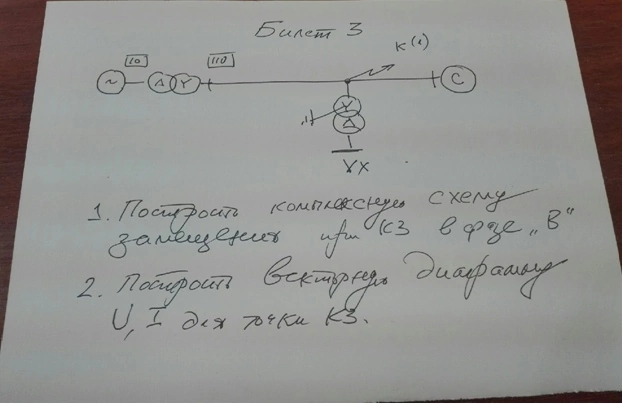 Задача: 1. Построить комплексную схему замещения при КЗ в фазе "В" 2. Построить векторную диаграмму U, I для точки КЗ. вариант 6