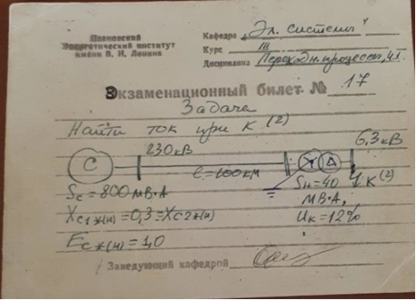 Главная » Учебные материалы » Переходные процессы » Решения задач » ИГЭУ им. Ленина » 7 семестр » Вариант 17 » Найти ток при K(2) Sc = 800 MВA Xc1(н) = 0,3 =Xc2(н) Ec * (н) = 1,0 Sн = 40 MВA Uк (2) = 12%