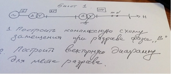 Задача: 1. Построить комплексную схему замещения при разрывe фазы "B". 2. Построить векторную диаграмму для места разрыва.