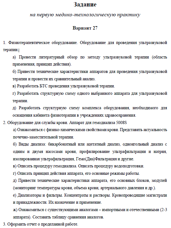 Отчёт по практике: Физиотерапевтическое оборудование. Оборудование для проведения ультразвуковой терапии вариант 27