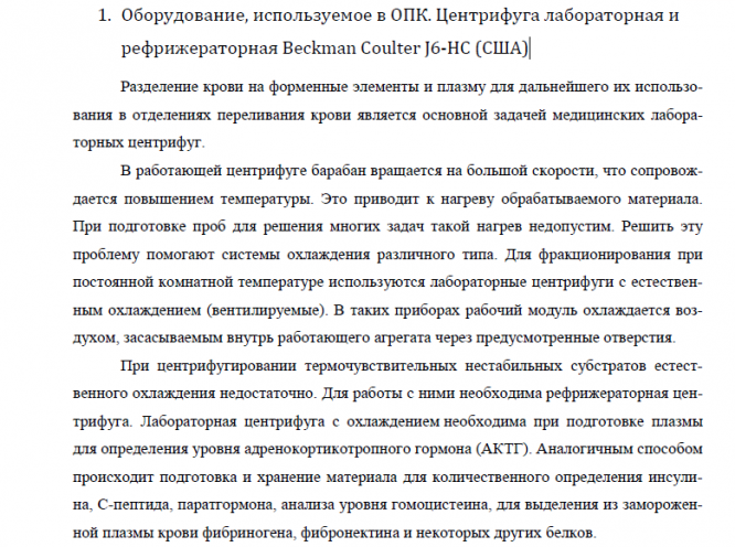 Отчёт по практике: Оборудование, используемое в ОПК. Центрифуга лабораторная и рефрижераторная Beckman Coulter J6-HC (США)