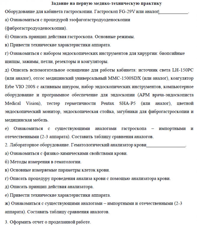 Отчёт по практике: Оборудование для кабинета гастроскопии. Гастроскоп FG-29V или аналог вариант 45