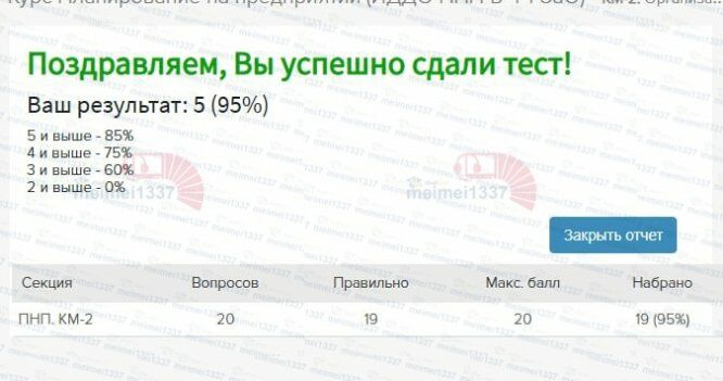 Ответы к заданиям КМ-2: КМ-2. Организация процесса планирования. Тестирование - 95%