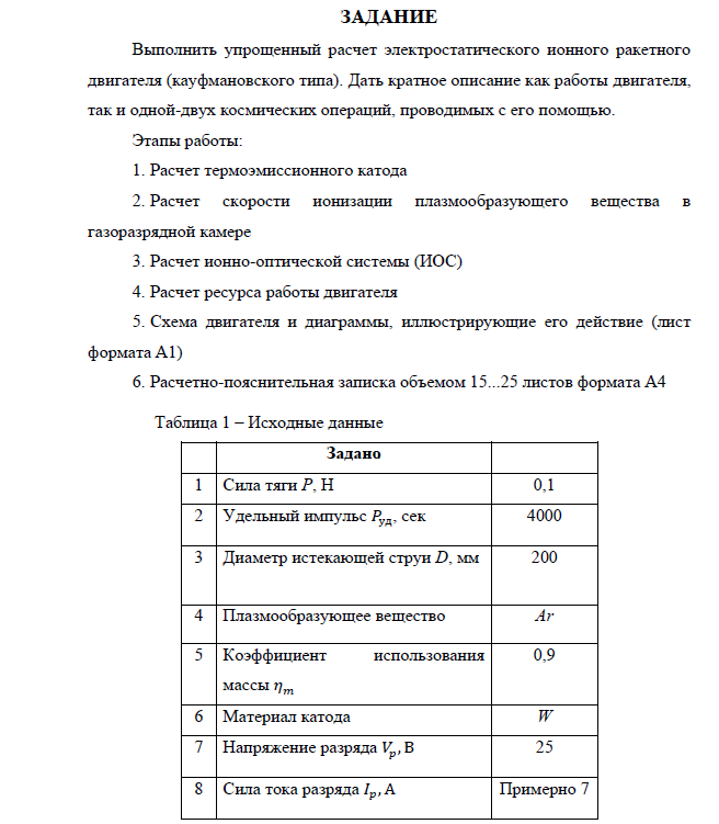 ДЗ: Упрощенный расчет электростатического ионного ракетного двигателя (кауфмановского типа)
