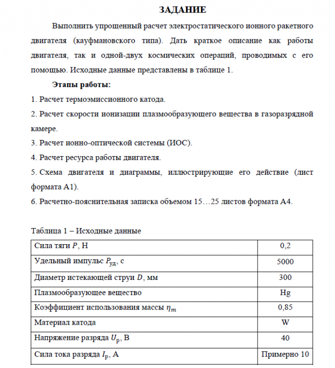 ДЗ: Упрощенный расчет электростатического ионного ракетного двигателя (кауфмановского типа)
