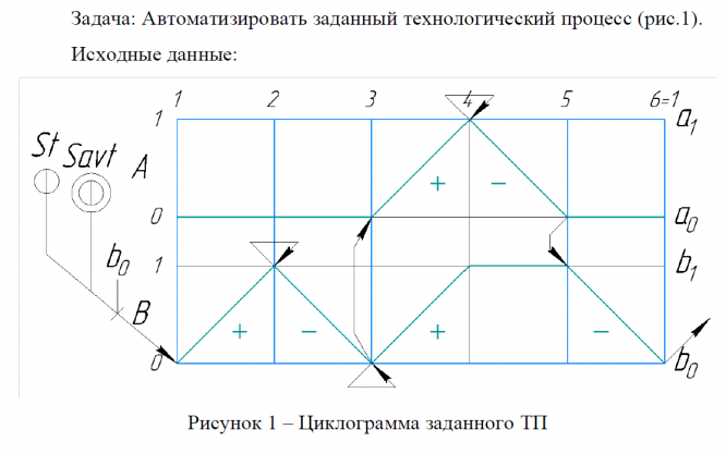 На циклограмме предоставлен технологический процесс. В задании разработан алгоритм для пошагового управления пневматической и электропневматической систем (файл 1 и 2 соответственно). Работа сделана в среде FluidSim - P (Festo). Схемы и пошаговые скриншоты приведены в файлах.