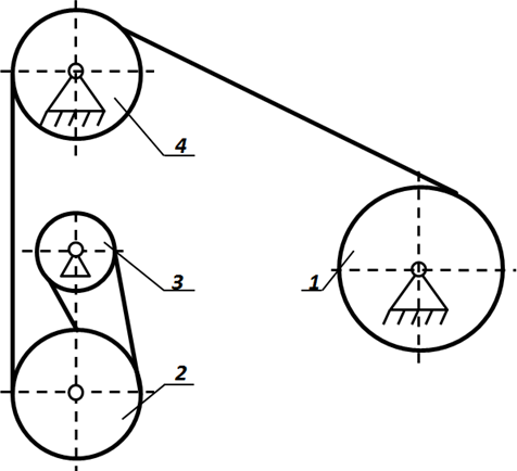 Задача 2. Для заданной схемы полиспаста (рис. 3) определить значение максимального натяжения ветви стального каната и окружную скорость барабана, если вес поднимаемого груза 𝑮 (H), скорость подъема груза 𝑽 (м/мин) заданы по вариантам (таблица 4). Принять коэффициент полезного действия одного блока полиспаста равным 0,95. Какую длину каната необходимо навить на барабан, чтобы поднять груз на высоту 𝑯, м?