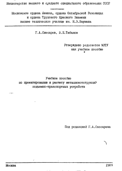 Г.А. Снесарев, В.П. Тибанов, В.М. Зябликов -Учебное пособие по проектированию и расчету металлоконструкций подъемно-транспортных машин